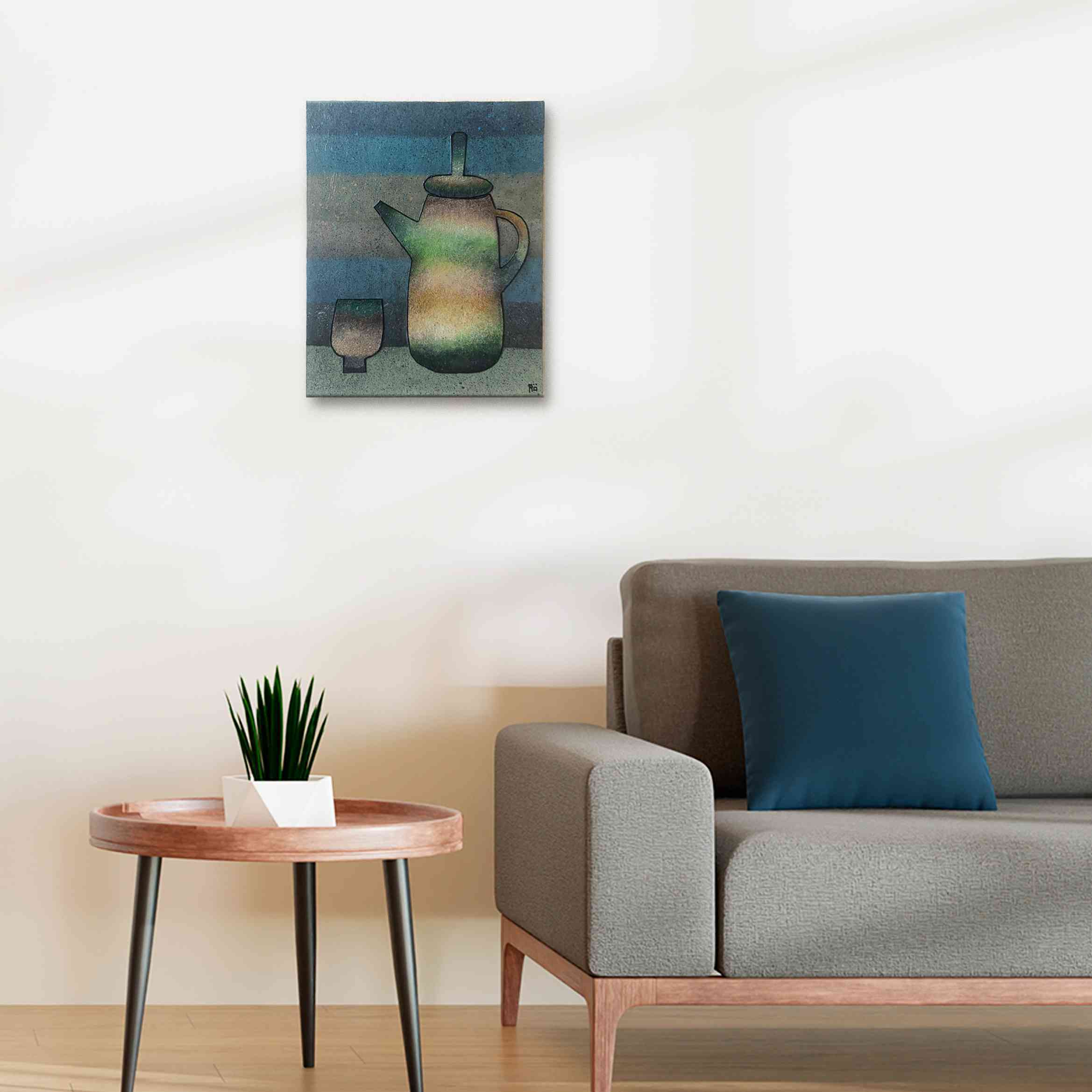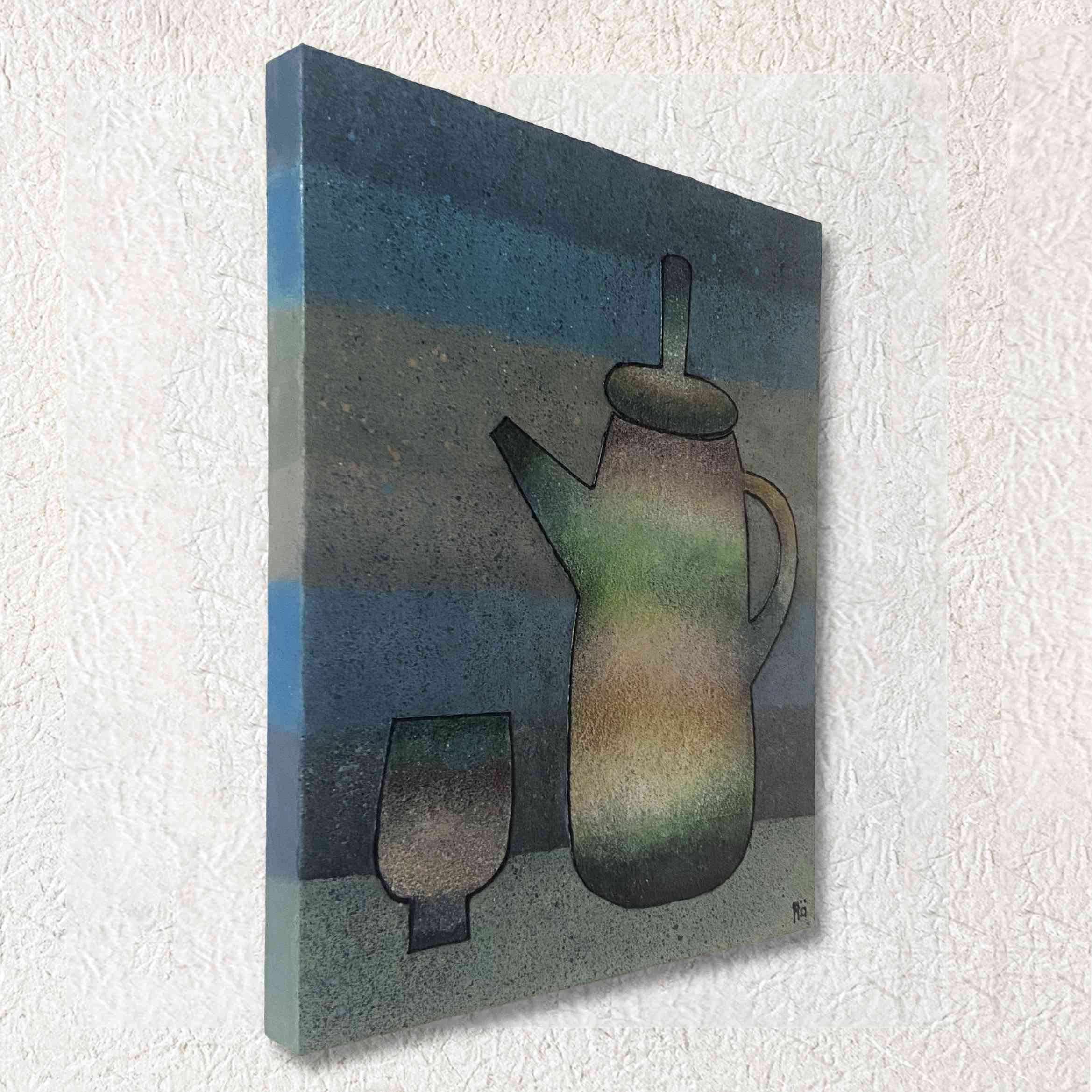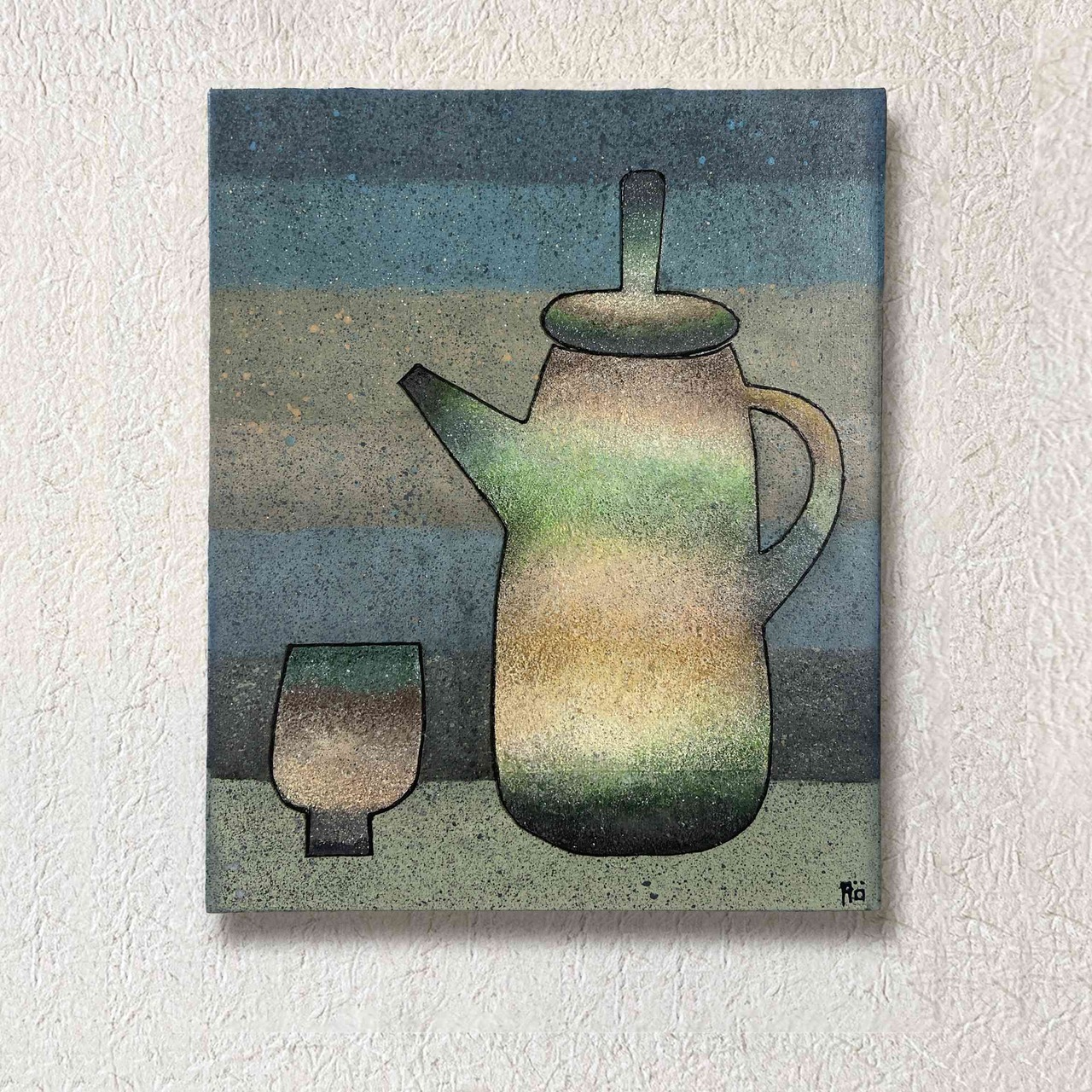 急須と湯呑みが会話しているよう想像しながら、楽しく優しい気持ちで描きました。