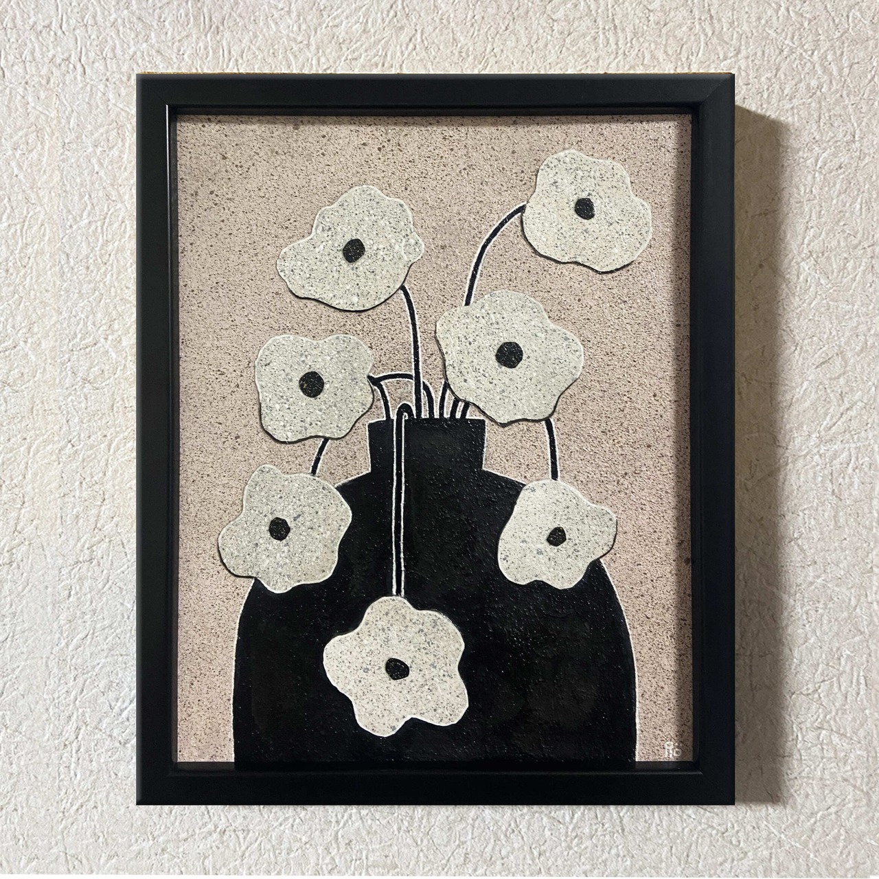絵の具の粒を幾重にも重ねた凹凸感も楽しんで頂けますと幸いです。