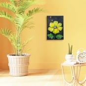 背景は一見、黒単色に見えるかもしれませんが、透明絵の具の青と黒を交互に重ね、赤や黄色等細かい粒子も閉じ込め深みのある色合いになっております。